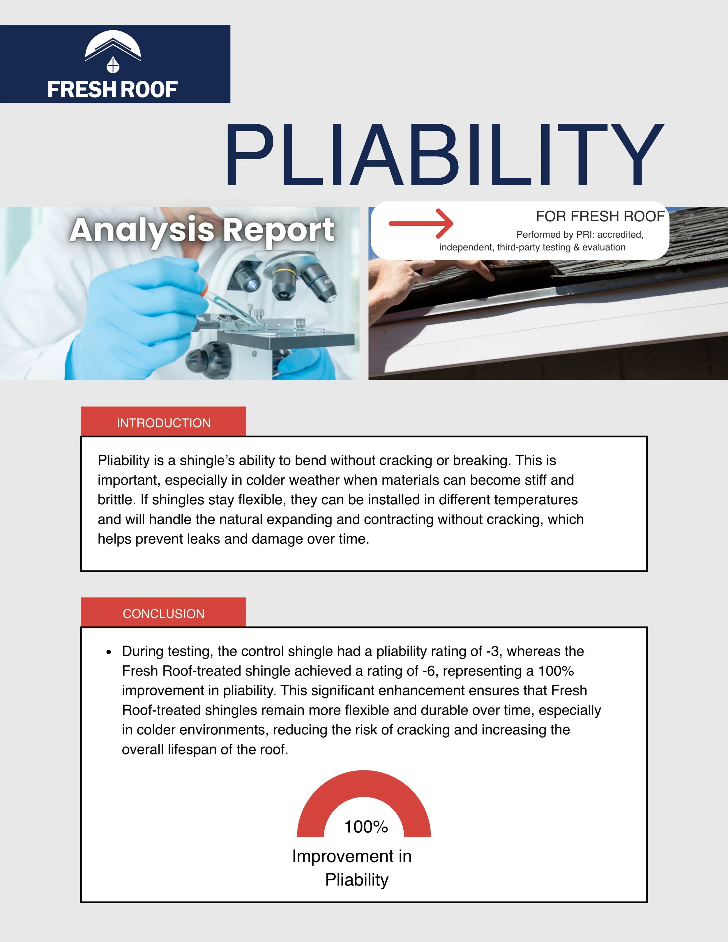 Testing results for how Fresh Roof increases pliability in asphalt roof shingles.
